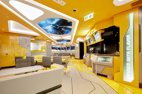 เมื่อลูกค้าขึ้นบันไดไปยังชั้นบน พวกเขาจะได้เข้าไปในห้องควบคุมของยานอวกาศ ทำให้รู้สึกเหมือนกำลังเดินทางผ่านอวกาศ จอ LED แบบกำหนดเองบนผนังและเพดานเล่นฟุตเทจ “สด” ของพื้นที่รอบนอก สร้างประสบการณ์ที่น่าประทับใจและน่าดึงดูดใจแก่ผู้เข้าพัก ตัวละคร Transformers จะปรากฏตัวและโต้ตอบเพื่อยกระดับประสบการณ์การรับประทานอาหารให้สนุกยิ่งขึ้น นอกจากนี้ยังมีเซอร์ไพรส์ที่ซ่อนอยู่ทั่วทั้งร้านเพื่อประสบการณ์การรับประทานอาหารที่มากกว่าที่เห็น