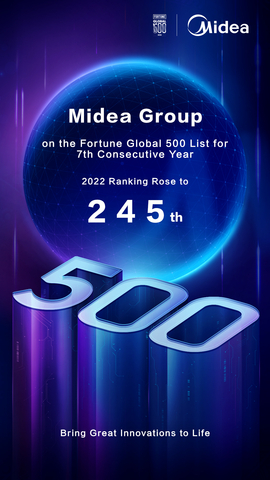 รายชื่อ Fortune Global 500 ปี 2565 โดย Midea Group ได้รับการจดทะเบียนใน Fortune Global 500 เป็นปีที่เจ็ดติดต่อกัน โดยคราวนี้ได้เลื่อนขึ้นสู่อันดับที่ 245