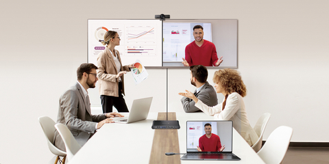 ด้วยเอาต์พุต HDMI คู่ ระบบจึงสามารถรองรับการเชื่อมต่อกับจอแสดงผลขนาดใหญ่สองจอ ให้ภาพคมชัดระดับ 4K และรูปแบบหน้าจอที่ยืดหยุ่น ส่วนโหมด Quad-View ที่เพิ่มเข้ามาใหม่จะช่วยให้ผู้ใช้สามารถแสดงภาพจากแหล่งข้อมูลต่างๆ พร้อมกันได้สูงสุดถึงสี่แหล่งบนหน้าจอเดียว ทำให้การเปรียบเทียบข้อเสนอแบบเคียงข้างกันหรือการนำเสนอแบบหลายผู้เข้าร่วมเป็นเรื่องง่าย