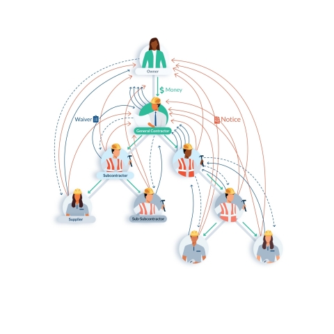 ในสหรัฐอเมริกา สิทธิยึดหน่วงเป็นพื้นฐานของระบบกระแสงานในการปฏิบัติตามข้อกำหนดเหล่านี้ ผู้มีส่วนได้ส่วนเสียในการก่อสร้างใช้เวลาและพลังงานอย่างมากในการจัดการสิทธิในการยึดหน่วง — ตั้งแต่อุตสาหกรรมขั้นปลายที่ต้องการรักษาสิทธิการยึดหน่วงและต้องปฏิบัติตามความแตกต่างของกฎหมายภาระผูกพันที่แตกต่างกันไปในแต่ละรัฐ ไปจนถึงผู้มีส่วนได้ส่วนเสียต้นน้ำที่จัดหาการยกเว้นภาระผูกพัน ณ จุดชำระเงินอย่างต่อเนื่องเพื่อให้แน่ใจว่าโครงการของพวกเขาเป็นอิสระและชัดเจน ซึ่งความท้าทายและความซับซ้อนในการชำระเงินที่คล้ายคลึงกันยังมีอยู่ทั่วโลก