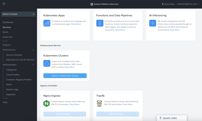 กำลังมองหาแพลตฟอร์ม PaaS หนึ่งเดียวที่สามารถโฮสต์ Reflex และ Vision Insights ของเราได้ทั้งที่ edge และบนไพรเวทคลาวด์ของเรา เพื่อใช้ประโยชน์จาก distributed architecture ของสภาพแวดล้อม ทั้งสอง และสนับสนุนการพัฒนาซอฟต์แวร์และการฝึกอบรมการใช้เครื่องจักรบนพับลิคคลาวด์ Karbon Platform Services มีบริการมากมายและมีทุกสิ่งที่เราต้องการจากโซลูชั่น PaaS ทั้งยังบริหารจัดการง่ายและสะดวกบนคลาวด์ทุกประเภท ซึ่งเป็นคุณสมบัติของนูทานิคซ์ที่เป็นที่รู้จักกันดี การใช้ Karbon Platform Services ทำให้การพัฒนา Vision Insight และทีม DevOps ของเราสามารถเริ่มทำงานจากศูนย์จนสำเร็จเป็นตัวต้นแบบได้ภายในเวลาไม่ถึงหนึ่งในสี่จากที่เคยใช้มา ลูกค้าที่ใช้งานซอฟต์แวร์นี้บน Karbon Platform Services ได้แก่ Schneider Electric ผู้เชี่ยวชาญชั้นนำระดับโลกด้านการจัดการพลังงาน และระบบอัตโนมัติ เป็นต้น